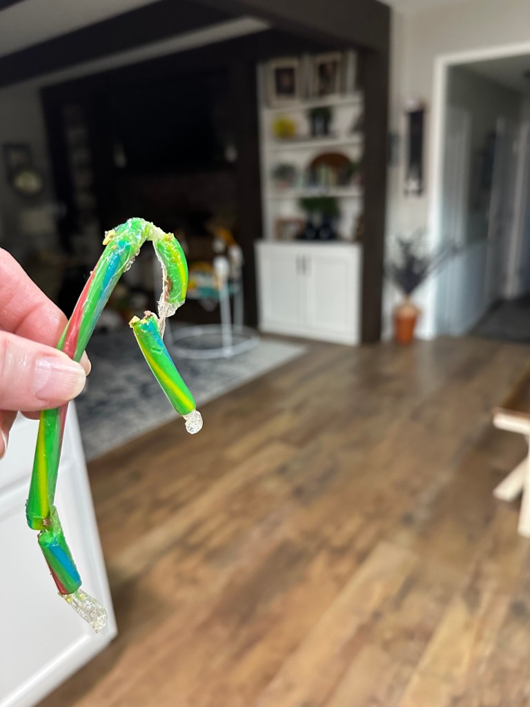 This…was an old, mangled, broken candy cane, complete with food crumbs stuck in the open spots.