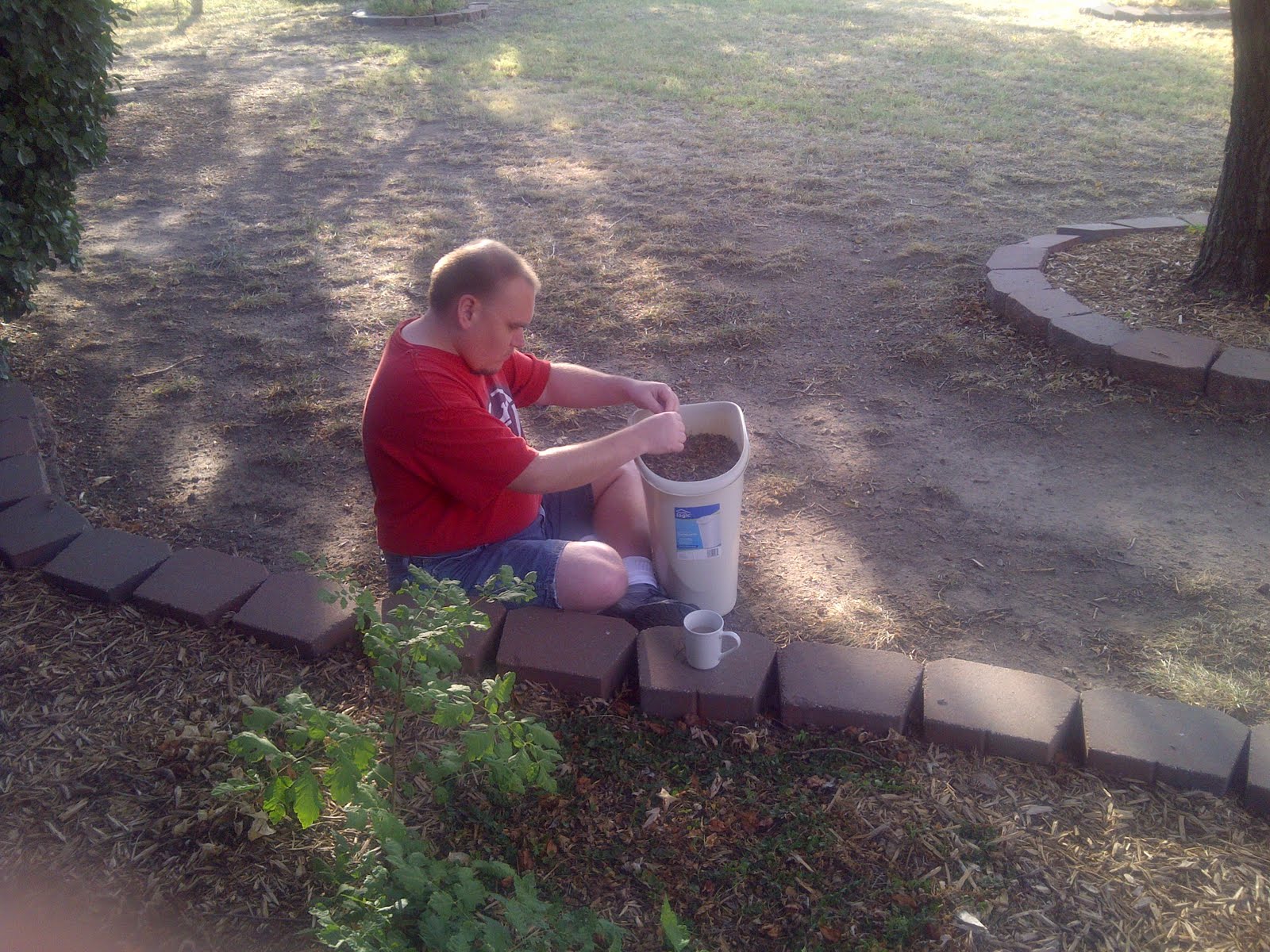 Aaron was outside with his container this morning, “playing in the mulch.” So I snapped a picture of him. No telling what stories are inside that head of his!