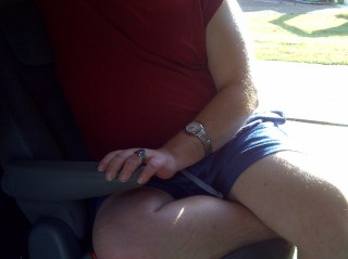 Aaron doesn’t care one little bit about fashion or being cool or in style. This attitude is refreshing, in a sense, but can also be embarrassing sometimes, too. For instance, it’s a little weird when he hikes his pants way up to his chest in the middle of Wal-Mart while making a huge production of tucking in his shirt. Quite a show for those who have the privilege of being nearby to see it! Or stretching really big and really loud, with his belly sticking WAY out – again, in the middle of a store, parking lot, waiting room………..he’s not particular.