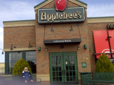 He was very happy to walk into Applebees for lunch, even though it wasn’t quite 12:00 yet. Close enough, though, so he agreed. We were seated in a booth in the bar area, which makes Aaron ask if he can taste some Coors Light……..and then laugh because he knows that he is so funny. “Well, Mom, I always wondered what beer tastes like.” Right, Aaron. Keep wondering.