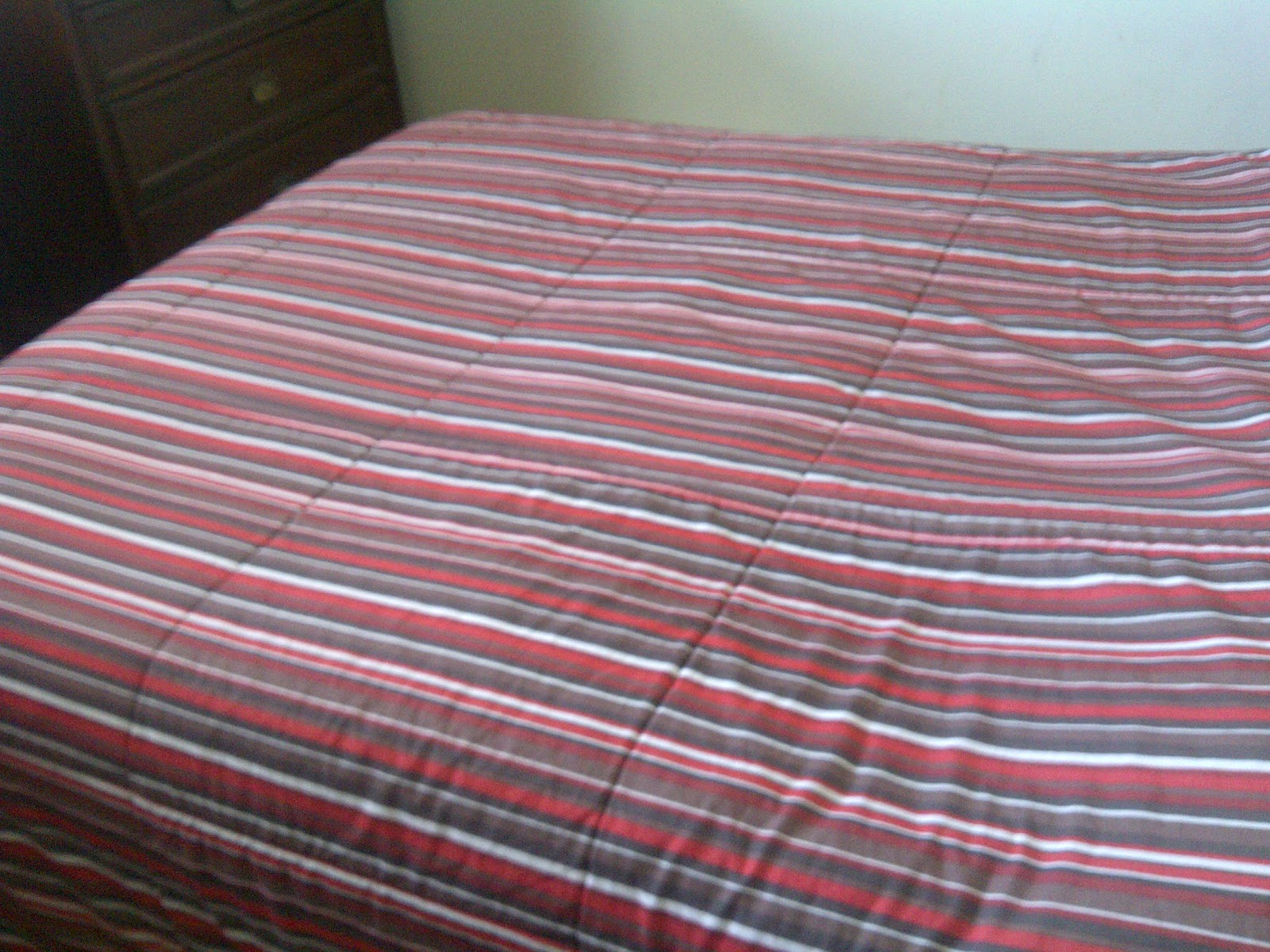 He surprised me by letting the striped side remain up for several days. But finally he flipped the comforter over to the polka dot side. We did not speak of this flipping incident. Until this morning.
