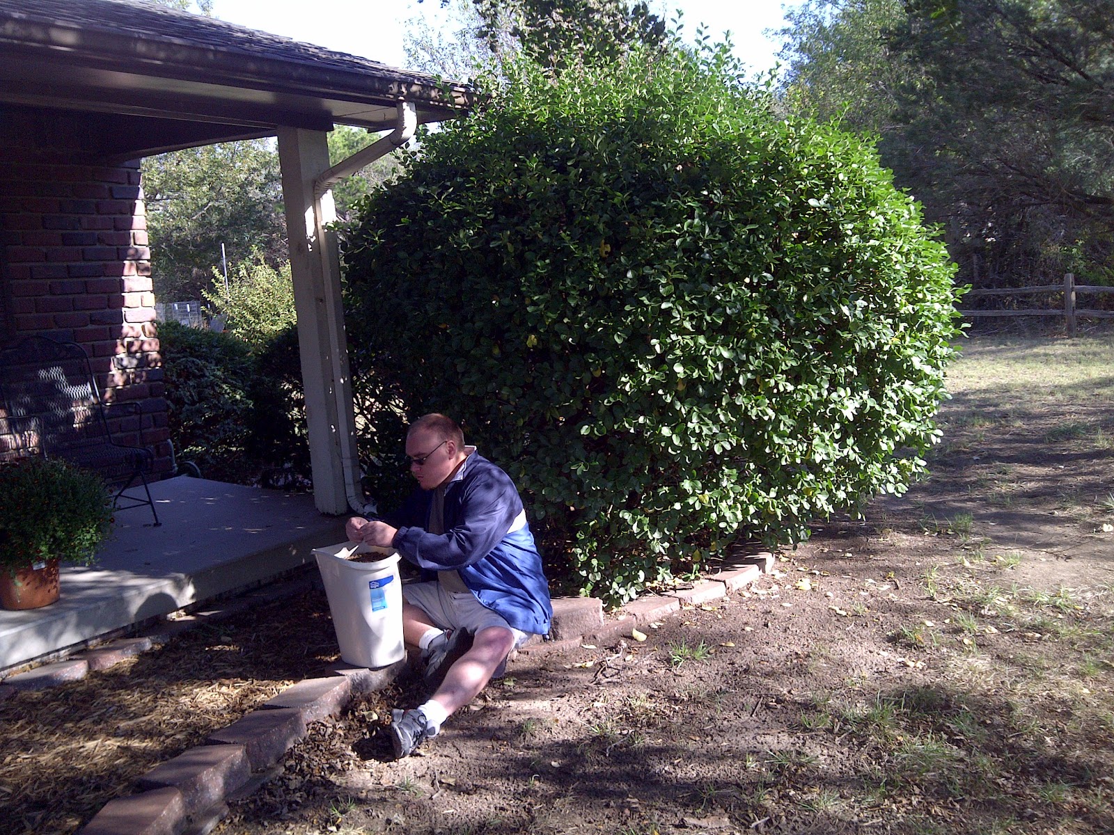 Aaron was “doing that creative.” I love his language…………well, most of the time………….and the way he really is very creative without even trying to be that way. And he will continue to “do that creative” out in the mulch, I’d say, for as long as he’s able to get himself up and down onto the ground.