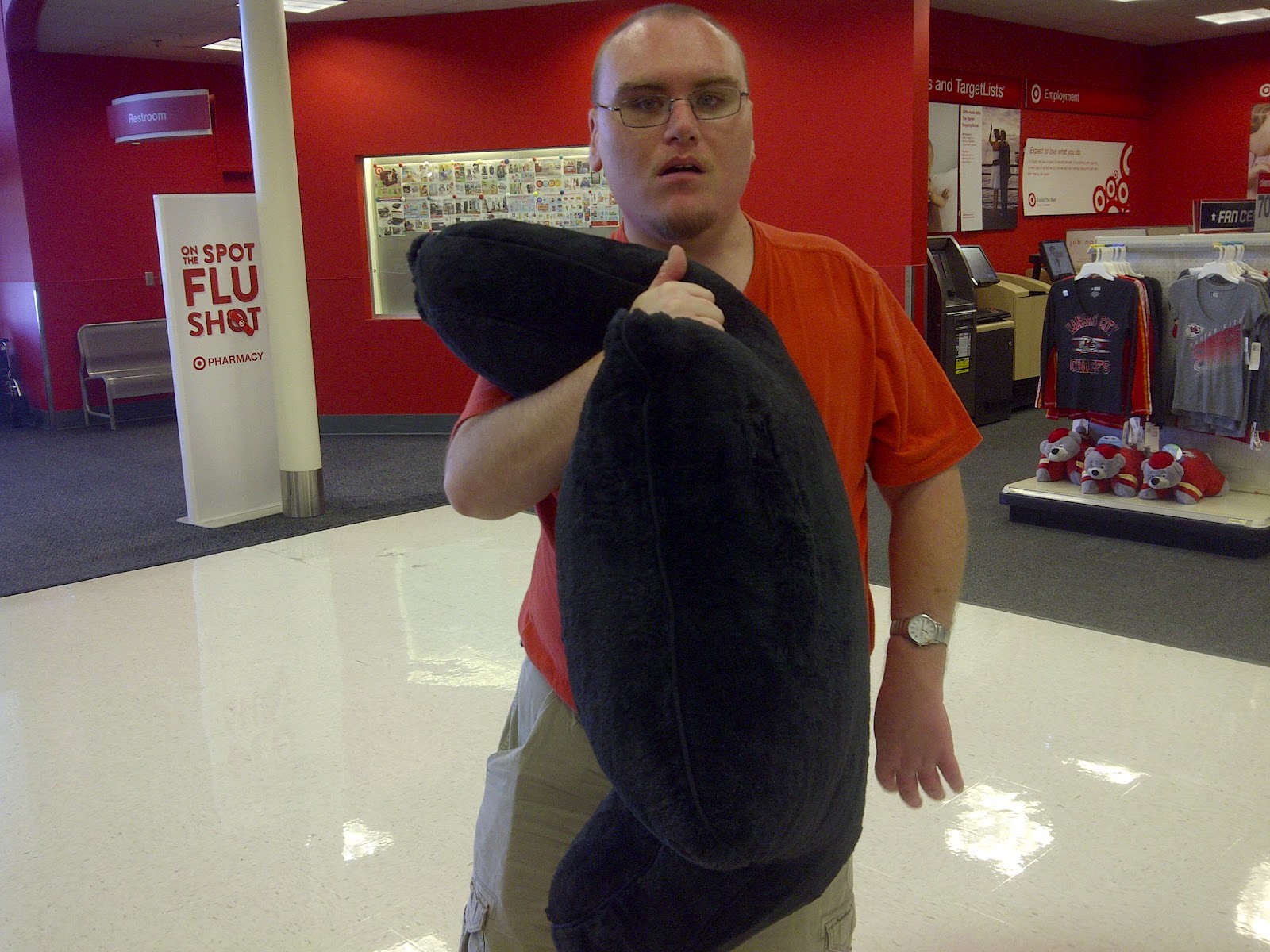 He was very happy to have found this wonderful pillow. As I placed the pillow in the cart, he then pulled 3 boxes of Mike and Ikes out of his pockets. Thank you, security guys, for not questioning my son about why he was stuffing Mike and Ikes into his pockets. Good grief, Aaron!