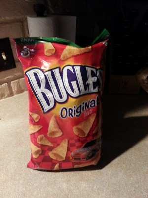 As we played Skip-Bo, he ate some Bugles chips. But Aaron never calls them Bugles. “Mom, these are those tornado chips!”