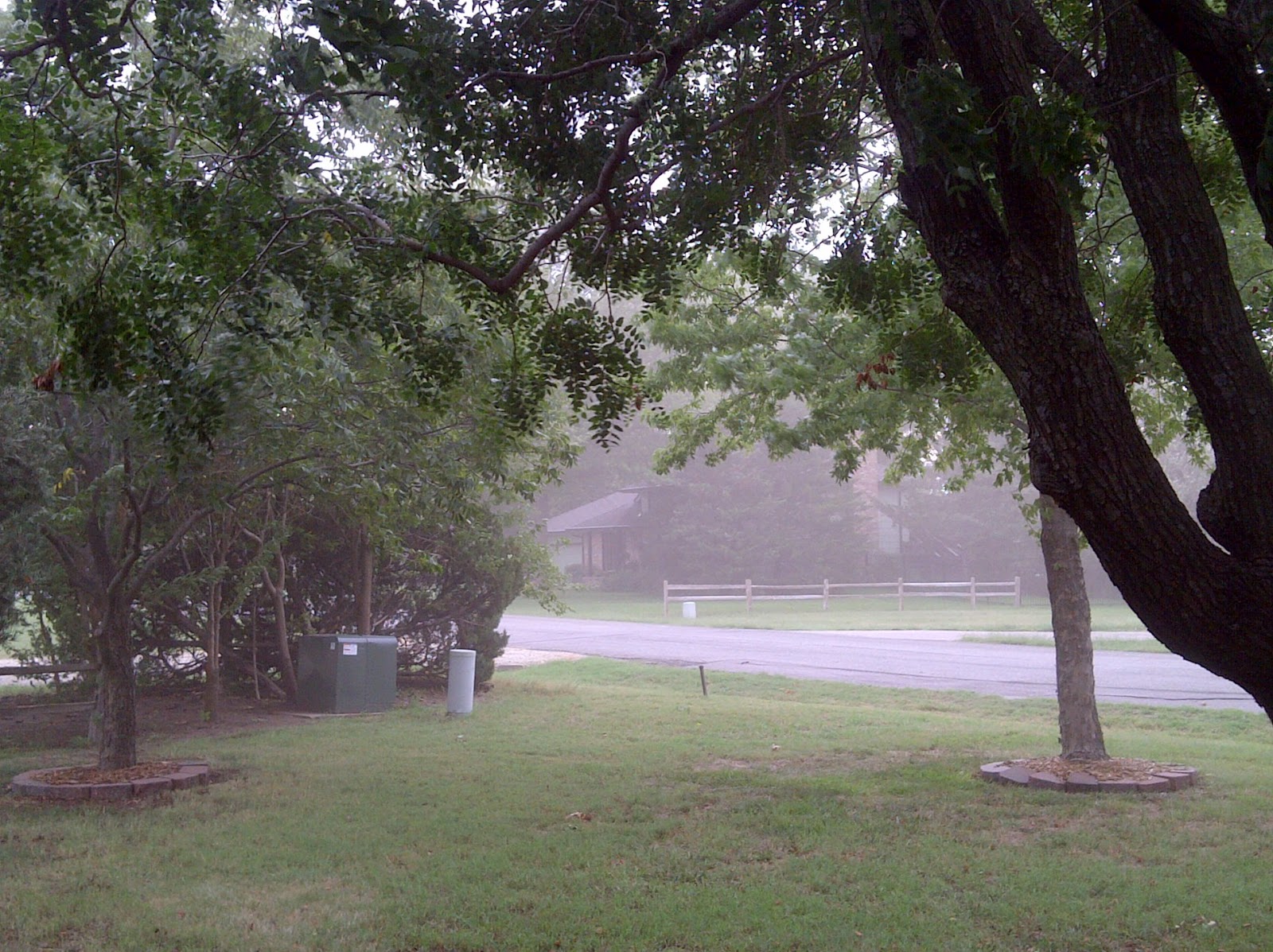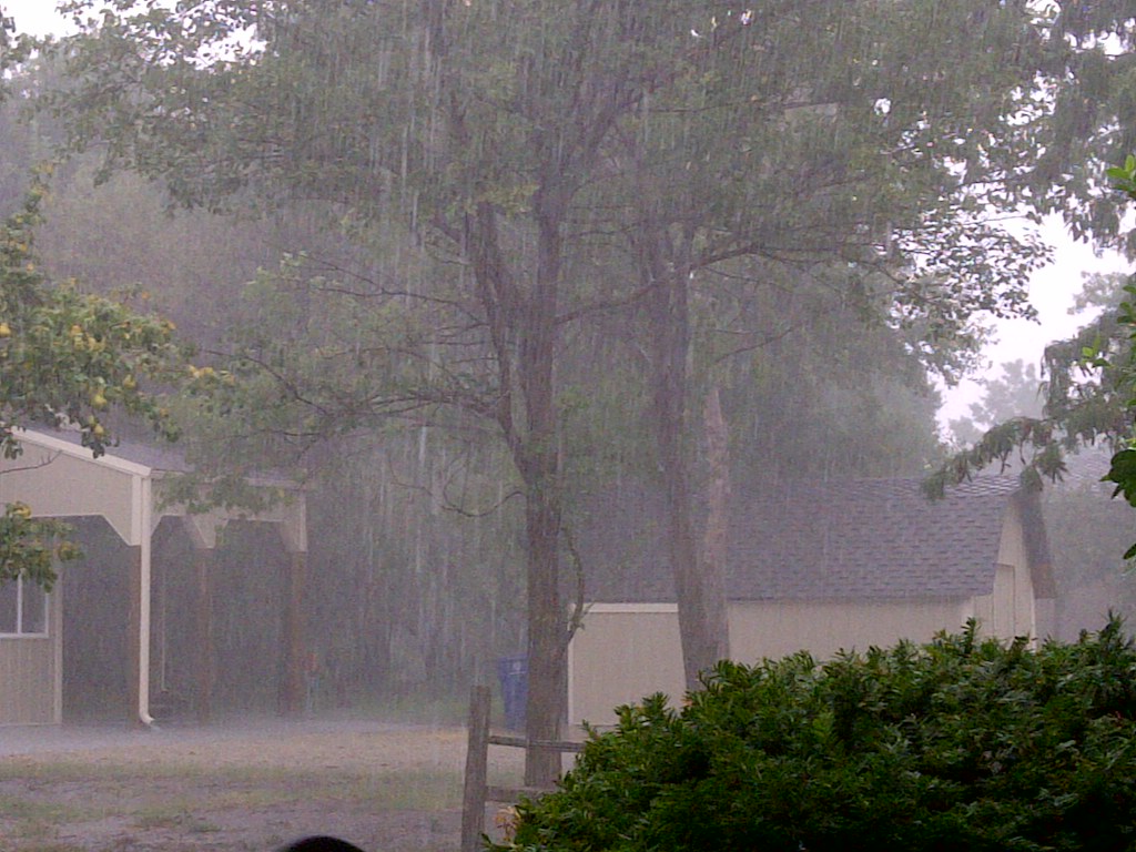 The whole scene was rather alarming as the sun was hidden and the dust created an almost twilight atmosphere. It was dirty and rough, and even stung the skin and caused the eyes to water. This was not at all what I had hoped that the wind was bringing our way. However, I soon heard a sound as I stood on our front porch and observed the unpleasant sight. Ever so softly, I heard it. Could it be rain? And as I watched and listened, I knew that in the midst of this dirty mess there was indeed the unmistakable sound of raindrops. The little pinging drops of rain soon turned into a shower and then into a nice downpour. What a welcome sight! The falling rain washed away the awful dirt, cleaning the atmosphere and the trees and the grass from the ugly coating of grime. The air cooled, and the scent became moist and sweet instead of dry and dusty. I stood on the porch, reveling in the pleasant change that the rain had brought. I was happy………the trees and grass seemed to glisten with relief……….and soon I heard birds singing with joy. On so many levels, this burst of rain was exactly what we needed at that moment!