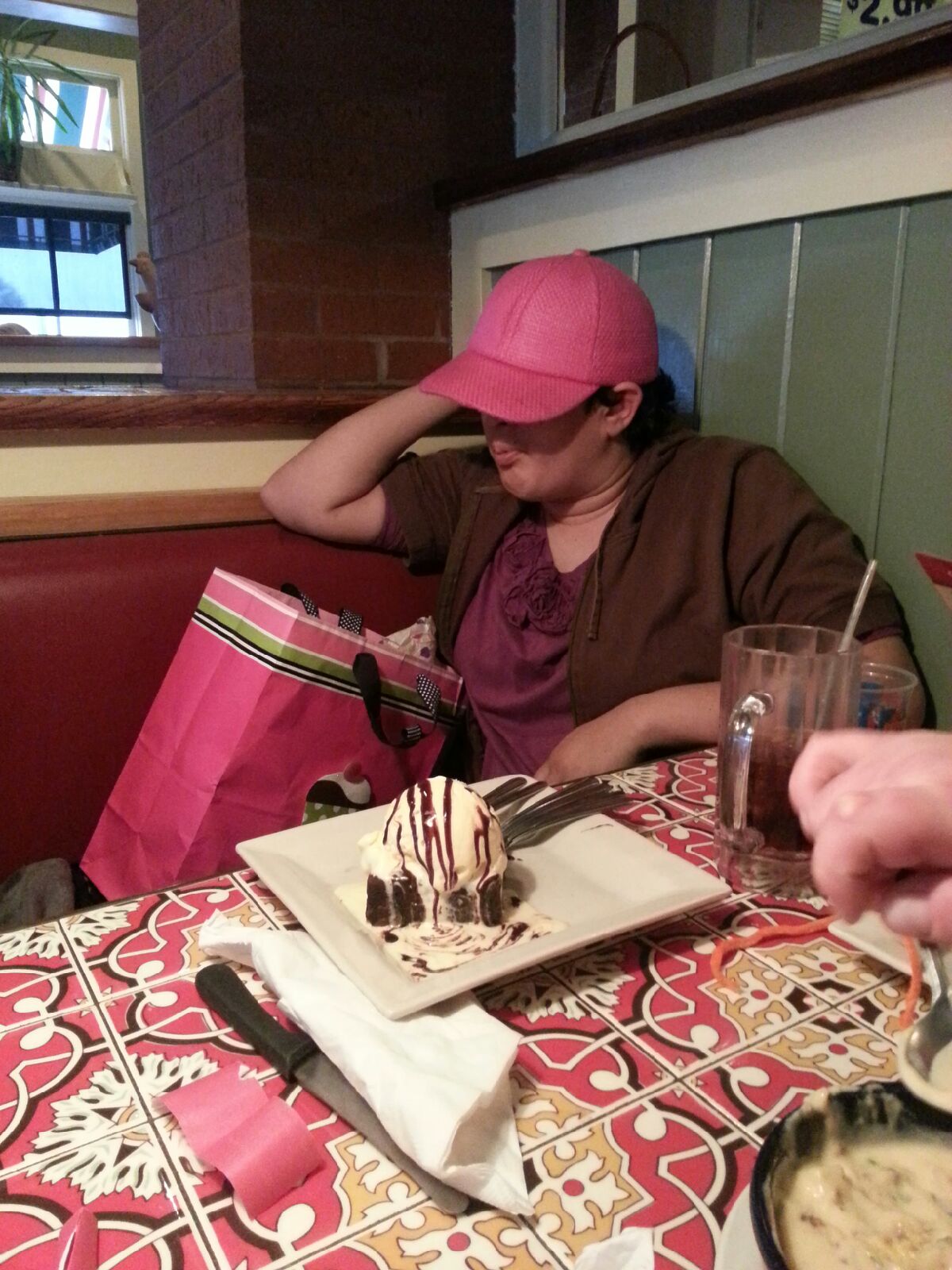 It wasn’t long before Gary got home, and off we headed for Chili’s………..with Aaron making sure that one of his favorite CD’s was playing in the van. Soon we were seated in the large booth with Leroy and Louise, and with Rosie. Rosie was eyeing the gift bag that was perched on the end of the table, while Aaron was beside himself with excitement. He was very loud and was talking non-stop………..sure signs of great excitement. Rosie was calm and level, while Aaron’s volume kept increasing and his mouth wouldn’t stop.