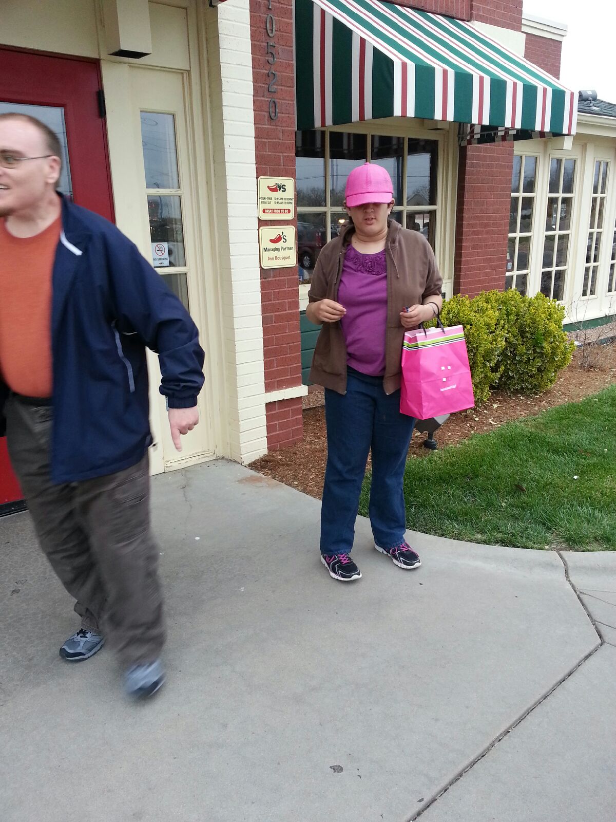 I wondered what others who were seated around us thought of all the noise (mostly from Aaron!) and the general excitement at our table. I wonder if anyone else saw what was really happening at our table. Life was happening……..normal for our Aaron and Rosie, no matter how unusual it might seem to others. Despite Aaron’s loudness and bluster, he has a tender place in his heart for Rosie. He showed it again last week, when he wanted to take Rosie some candy and I said no, reminding him that Rosie’s mom wants her to eat healthy food. And before I knew it, Aaron had two apples in his hands to take to Rosie.