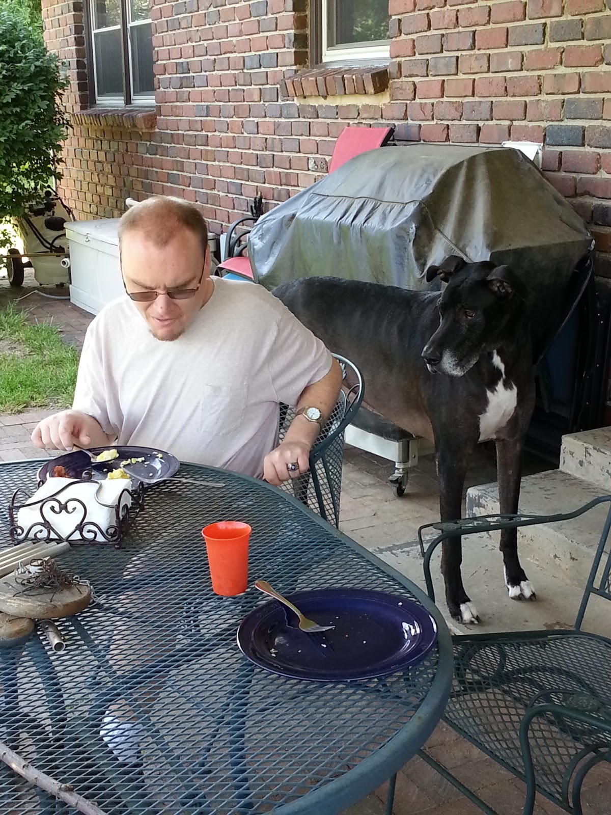 I then told Aaron that I would fix some bacon and eggs, which we could eat out on the patio, but that he needed to shower and get ready. He suddenly became much more animated as he said, “Yeah! And can Jackson come out with us?” I knew exactly what Aaron was anticipating……….the challenge of sneaking Jackson some food without Mom seeing him. Oh, I can read Aaron like a book! In so many ways he never changes, yet always amazes……..and frustrates! In his sameness he still manages to be ever interesting!