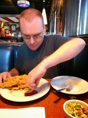 Today was dentist appointment day for Aaron – time for his four month check up and cleaning. Yes, he goes every four months because his dental cleaning skills are not at the top of his list of priorities. And for Aaron, today was GO OUT TO EAT LUNCH AND GO TO WAL-MART DAY……….with a little unwelcome side trip to the dentist to mess things up a bit. The dentist visit was a necessary evil that he had to endure in order to obtain his chief objectives.