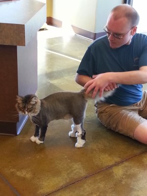 We stopped at the vet for dog food, where Aaron had to share the “Wurtz” and “warts” story with Charla as she rung up our dog food. And Aaron got to pet Kato the cat, who was just shaved and looked so adorable with her puffy tail and legs and face……..and who promptly gave Aaron a few little bites when he wouldn’t quit picking her up. As we left, Aaron happily told Charla about his good report from the dentist…….clean teeth and no cavities! “Do you ever have the dentist say your teeth are clean?” he asked her.
