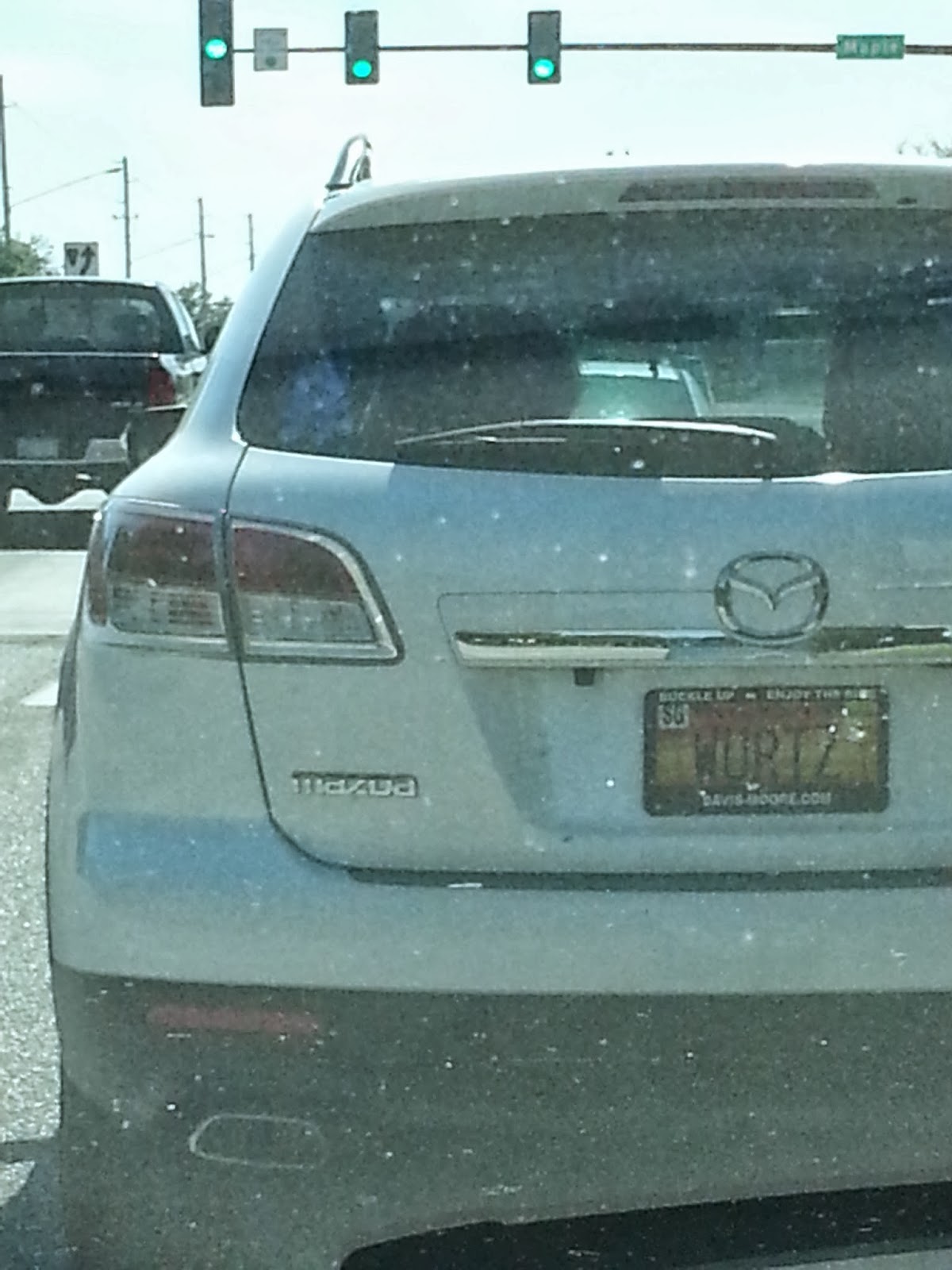 Aaron loves reading personalized license plates, and trying to guess what they mean. As we drove away from Wal-Mart, the car in front of us had the name “Wurtz” on their plate. “Look at that license plate, Mom!” he exclaimed. “That’s the stuff on your face!” “No, Aaron,” I said through my laughter. “That would be warts.”