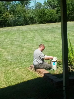 Thankfully, Nora can’t hear very well so she didn’t comprehend all of Aaron’s muttered comments. But she heard enough to know that he was displeased with her being there. One thing led to another, and by the time we sat down to watch Wheel of Fortune (of course!), Aaron had had enough. It was not a pleasant scene as he fought over keeping the remote, paced the floor like a wild animal, and was very verbal. Finally, he yelled at Nora with all his might and stormed outside…..where he sat in the mulch to wind down. He sat under the pecan tree, where he never sits, but where he was more hidden and farther from the house…..and from his problems.