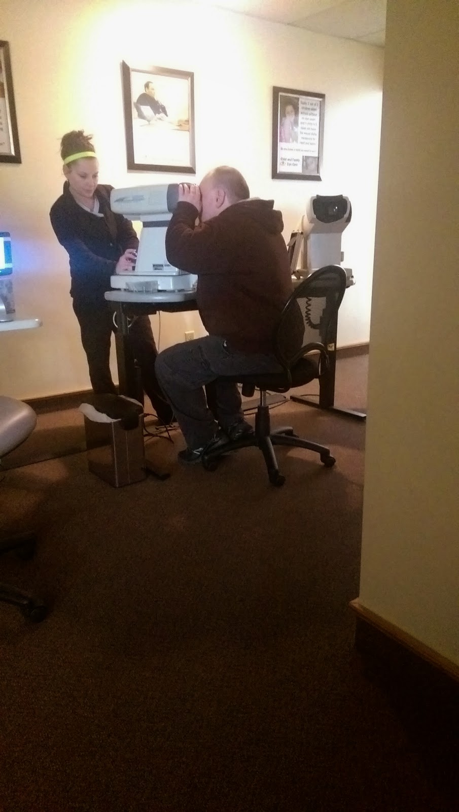 Thankfully these ladies were delighted with Aaron. Their give and take with him only encouraged him to continue with his stories, and I had to urge him to finally hush and follow me to a chair. His forced silence was short lived. He was immediately called back to begin the exam, so he hardly missed a beat before he was telling a new person about Falling Skies and skitters and that he broke his glasses the week before. He made me laugh as he did one of the eye tests, putting his hands up to the machine as if he was gazing at something exciting. Maybe he thought he would see another skitter?