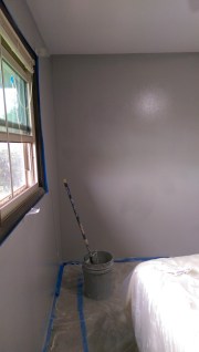 This past Saturday was a big day for Aaron. That’s the day that we had his room painted. The popcorn ceiling was removed and then the ceiling was painted; his walls were repaired and painted; and then the hall bathroom was painted as well. “Us kid’s bathroom,” as Aaron calls it. It’s fun to have a room painted, especially when you’re not doing it yourself. We hired our neighbor’s friend, Rudy, to do the job for us.