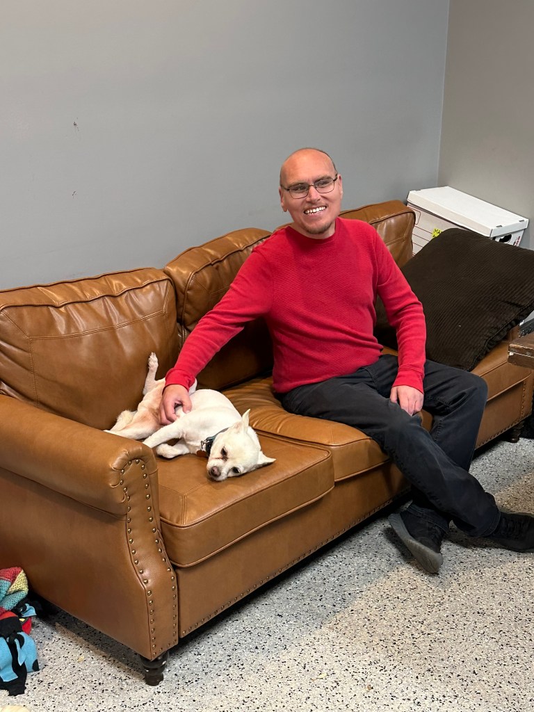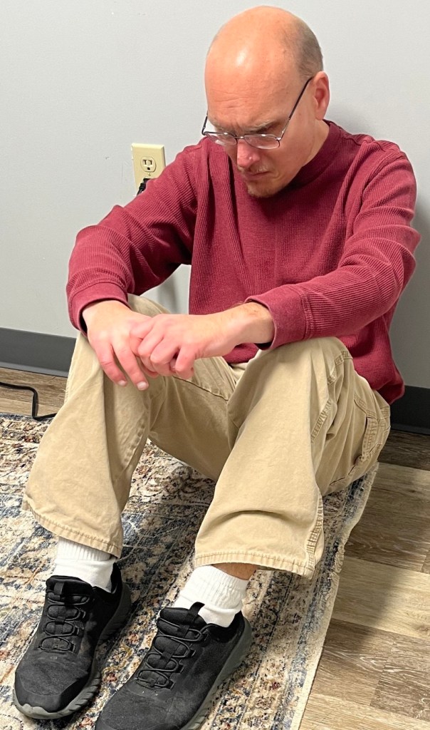 Aaron then got fully turned around so now his face was finally where his rear had been, and he decided to sit Indian style on the exam table.