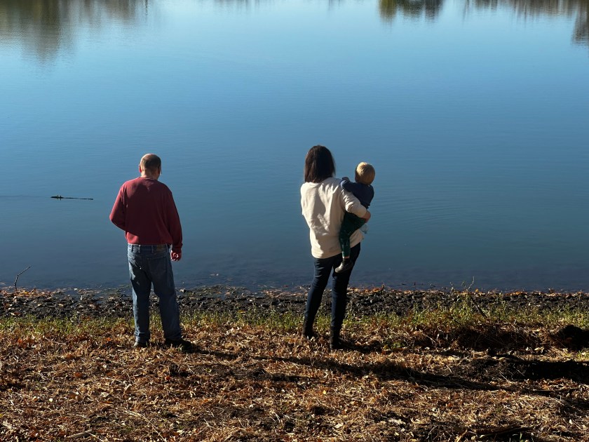 Then Aaron wanted to lead us on a walk around our neighborhood pond. It was really a precious time of Ryker happily following Aaron, and Aaron turning around to keep an eye on Ryker.