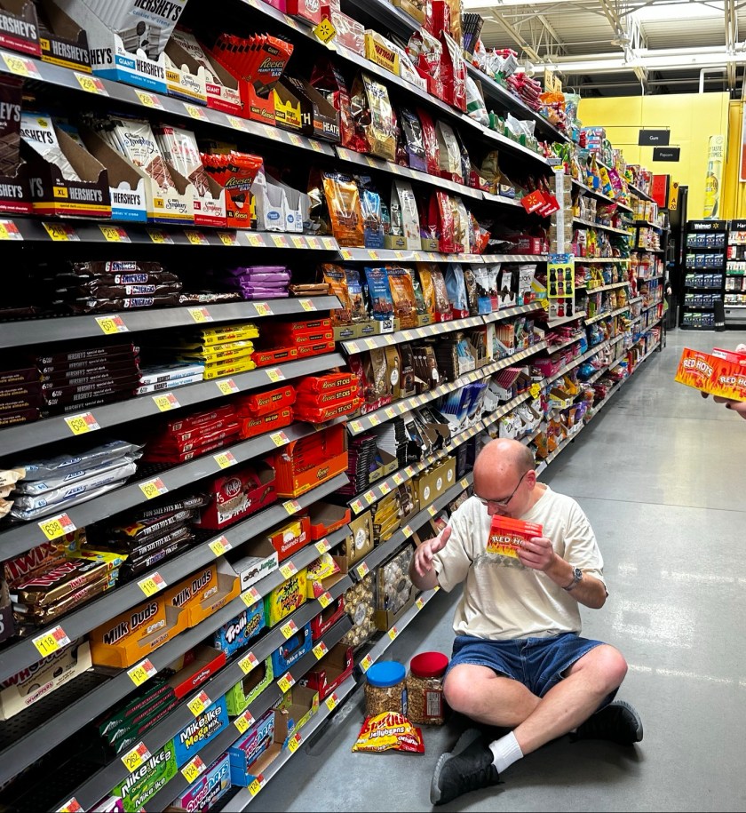 Aaron can be so funny. He is just who he is, too, especially in public. But even that can be a bit embarrassing to us as he does his Aaron things, oblivious to what others are thinking. Like sitting in the grocery aisle to examine his latest food find.