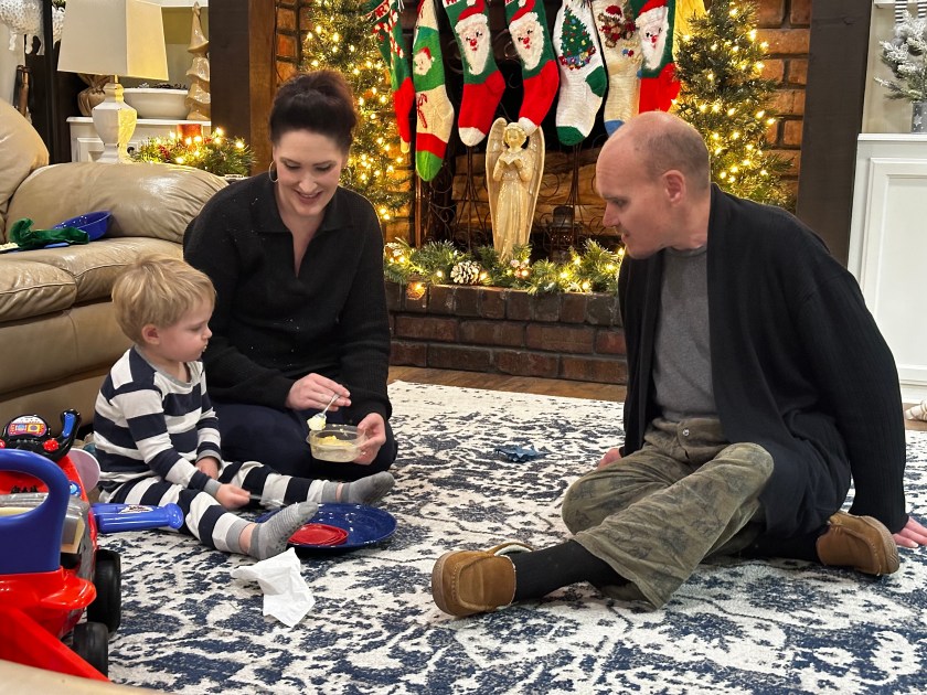 This lady is the kindest person and she loves Aaron. She complimented his green sparkly reindeer antlers and then asked to see his latest sticker book. She took all the time in the world to talk to him, all the while with a huge grin on her face and true delight.