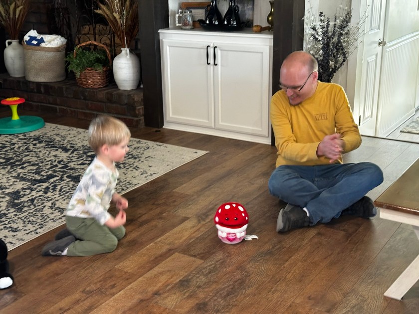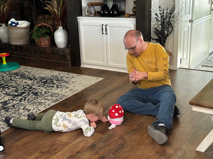 Aaron moved the mirror and gathered his book up after we were done. He was up and off without even a goodbye as our friend just laughed with…joy.