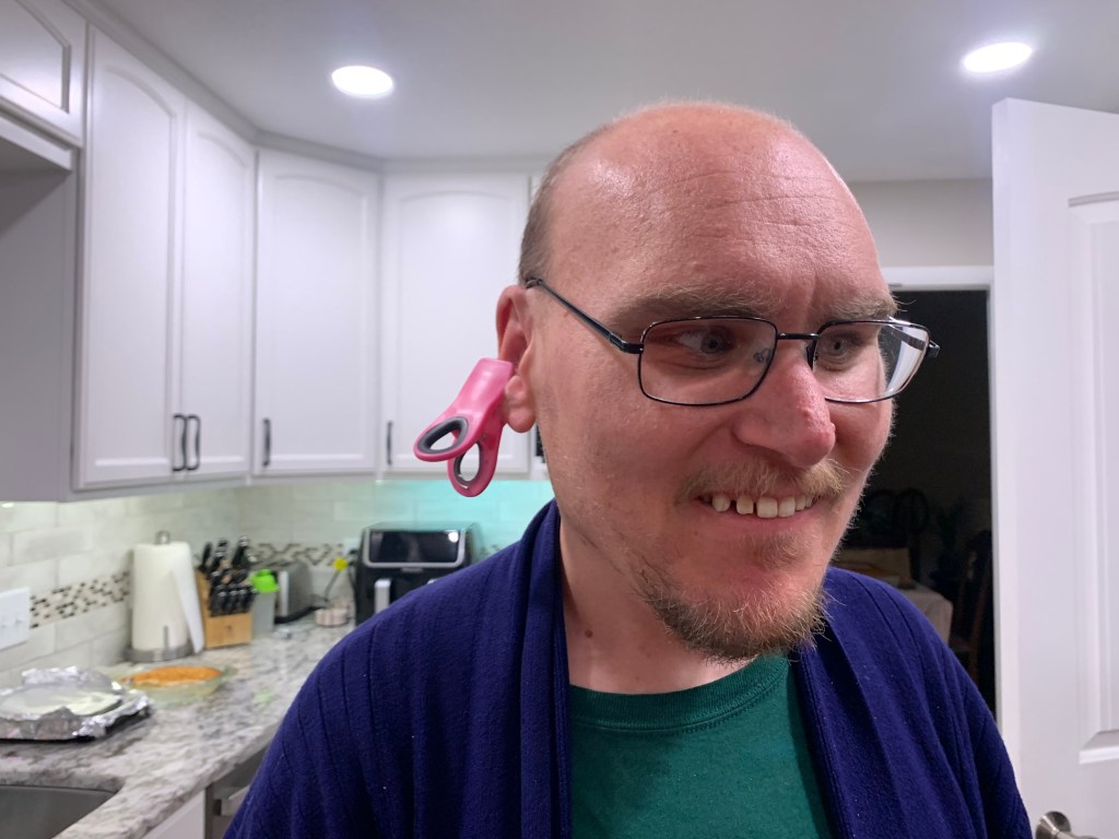 It started yesterday evening when Aaron went with me to Dillon’s. When we left the store and were getting into the van, the handle of my crossbody purse somehow knocked off my earring as I moved it over my head. I found the back of the earring as it poked my skin. Yep, it had gone down my shirt somehow. But nowhere in sight was my earring. I hurriedly searched for it, and so did Aaron, but we couldn’t find it. I told him not to worry, because things like this can worry him, and off we drove to pick up some pizza for supper.