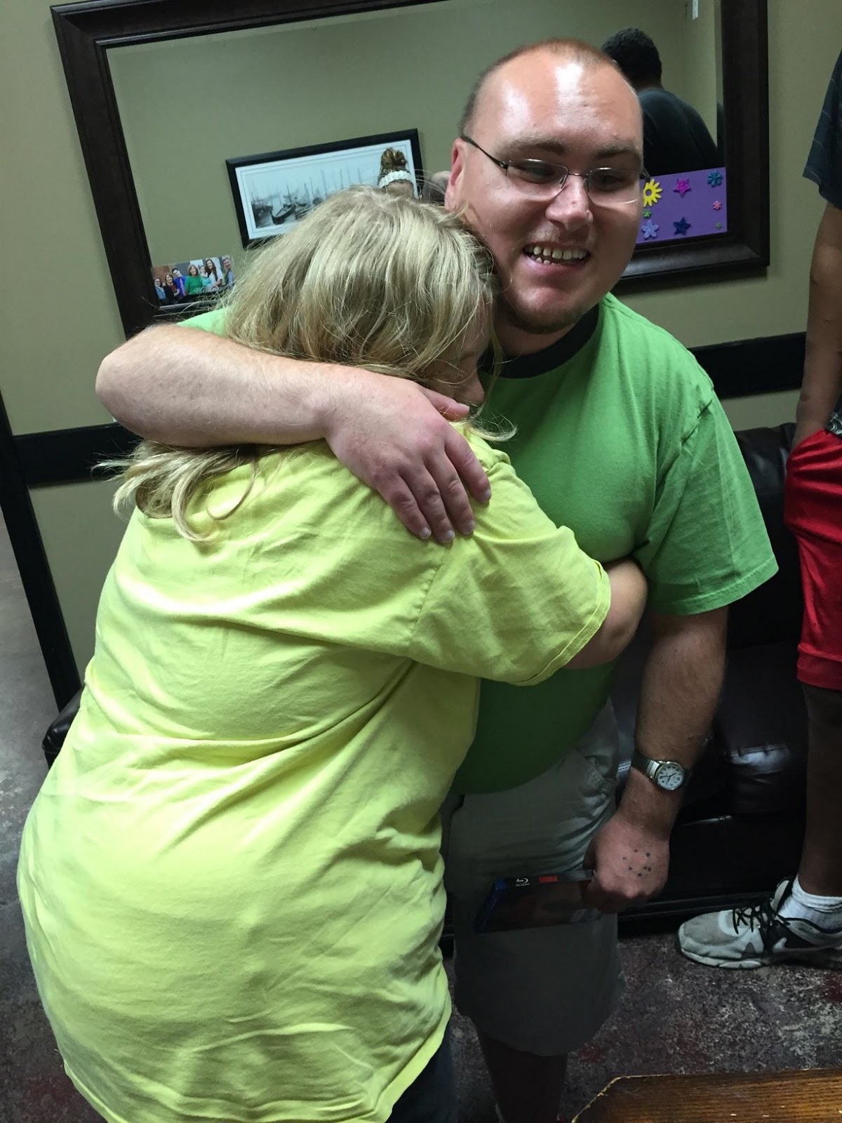 · On Saturday, Holly let her grandparents watch Aaron so that she could rest and recover. Dennis and Freda are friends who know Aaron, and they did a great job.