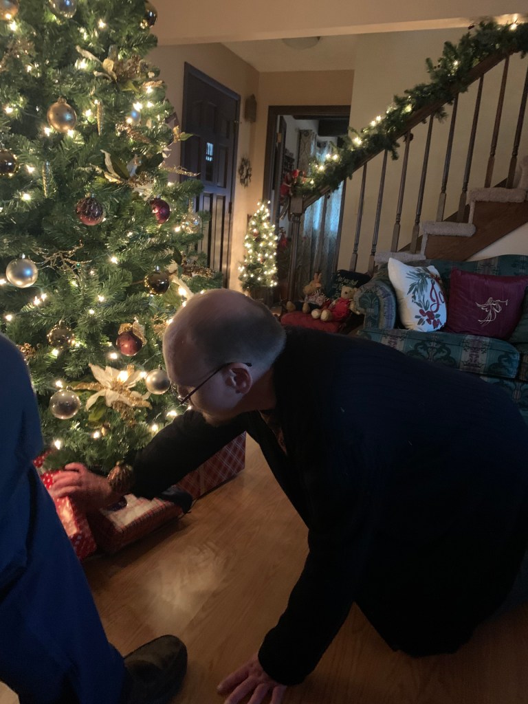 Aaron followed me into the dining room one day. I wasn’t paying attention to him behind me as I worked on our Christmas village.