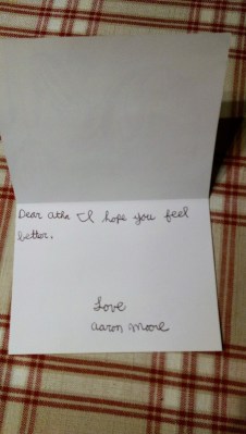OK, I just snuck in his room and took a peek. He wrote down his getting out of bed time as 7:02. Isn’t he funny and amazing?