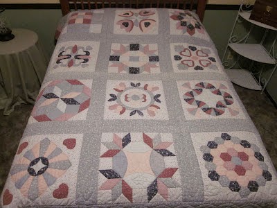As Bob and Jan, and John and Jeanie, planned Mom’s funeral, they incorporated two very sweet and personal elements into the service. Jeanie asked each of the grandchildren to write down their memories of their grandmother. At her funeral, Jimmy read every word that had been written. It was a very moving and sometimes humorous part of the service. Then Jan asked each of us to bring our quilts that Mom had made us. Each hand stitched quilt that we brought was hung over the railings at the front of the church, adding a beautiful background as we remembered our mother.
